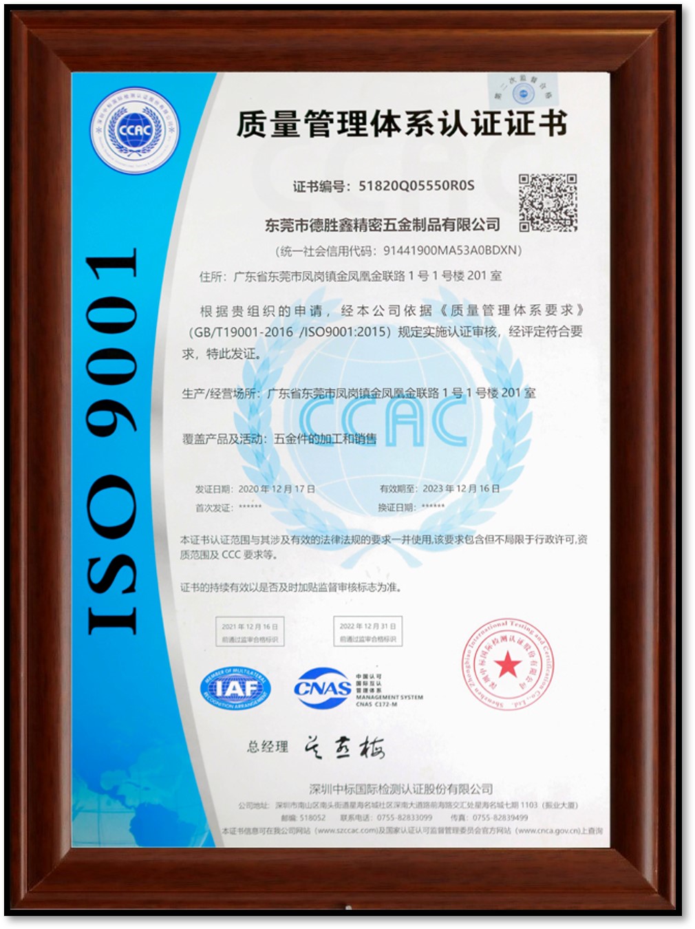 • 質量管理體系認證